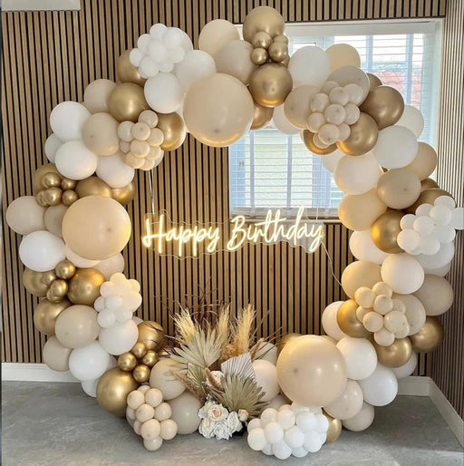 View full detailsLuxury Champagne & White Happy Birthday Balloon Garland Kit – 65 pcs