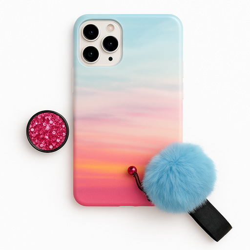 View full detailsBlue Marble Case with Teal PopSocket & Blue Pom-Pom – iPhone 11 Pro Max