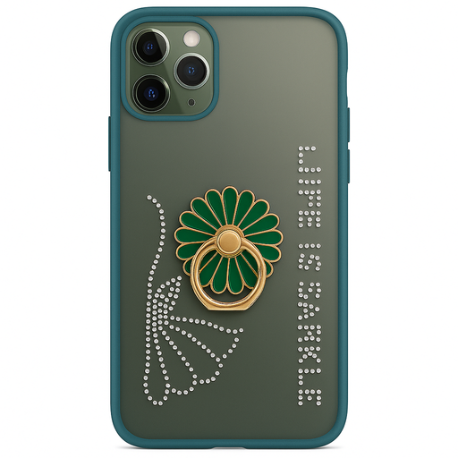 View full detailsiPhone 11 Pro Max Case – Green Flower Ring with Rhinestone Design